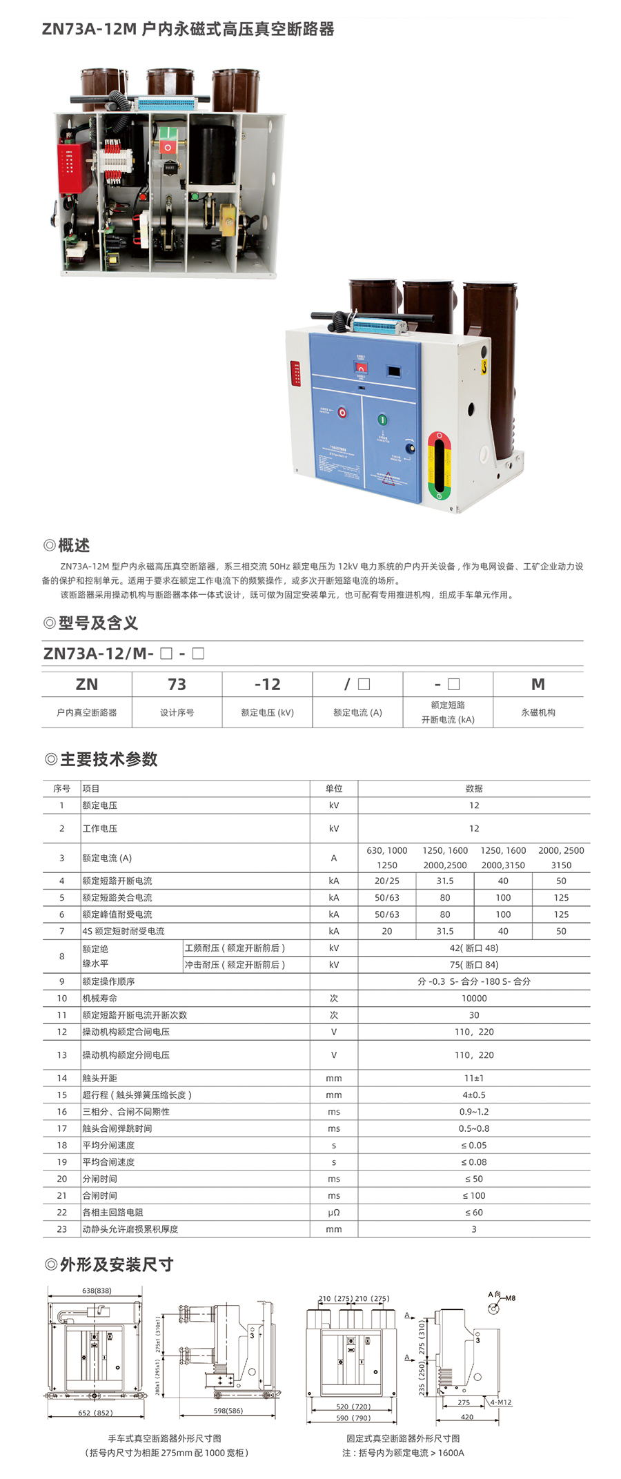ZN73A-12M戶(hù)內(nèi)永磁式高壓真空斷路器
