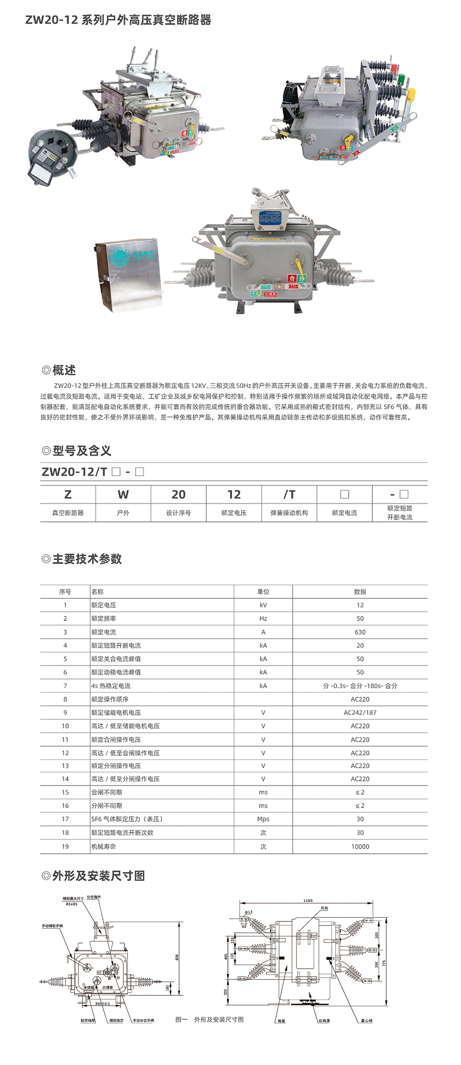 ZW20-12/630-20型戶外高壓交流真空斷路器(以下簡(jiǎn)稱斷路器)為額定電壓12kV,三相交流50Hz的戶外配電設(shè)備。它采用真空滅弧和SF6氣體作為絕緣介質(zhì),是ZW20-12型柱上真空斷路器改進(jìn)型產(chǎn)品。箱體采用了引進(jìn)日本東芝公司VSP5的氣體密封,防爆,絕緣結(jié)構(gòu)技術(shù),進(jìn)出線導(dǎo)管也進(jìn)行了密封性能改進(jìn),整體密封性能優(yōu)良,內(nèi)部充裝的SF6氣體不泄漏,不受外界環(huán)境影響,其彈簧操作機(jī)構(gòu)進(jìn)行了小型化設(shè)計(jì)和可靠性和穩(wěn)定性優(yōu)化,采用直動(dòng)鏈條主動(dòng)和多級(jí)脫扣系統(tǒng),動(dòng)作可靠性和穩(wěn)定性比國(guó)內(nèi)傳統(tǒng)的彈簧操作機(jī)構(gòu)提高了好幾倍:主回路的軸與套之間的接觸采用了內(nèi)收外張式表鏈結(jié)構(gòu),主回路的接觸電阻小,溫升低。所以,ZW20A-12型戶外柱上真空斷路器是一種免維護(hù)產(chǎn)品,是柱上斷路器中的佳品。