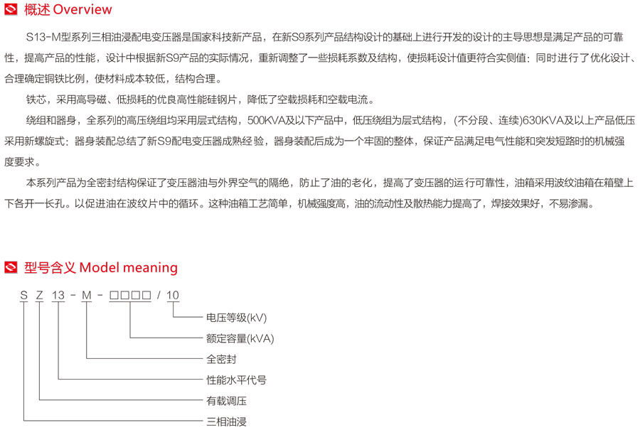 S13-M型系列三相油浸配電變壓器是國家科技新產(chǎn)品,在新型S9系列產(chǎn)品結(jié)構(gòu)設(shè)計的基礎(chǔ)上進行開發(fā)設(shè)計的主導思想是滿足產(chǎn)品的可靠性,提高產(chǎn)品的性能,設(shè)計中根據(jù)新S9產(chǎn)品的實際情況,重新調(diào)整了一些損耗系數(shù)及結(jié)構(gòu),使損耗設(shè)計值更符合實側(cè)值:同時進行了優(yōu)化設(shè)計、合理確定銅鐵比例,使材料成本最低,結(jié)構(gòu)合理。