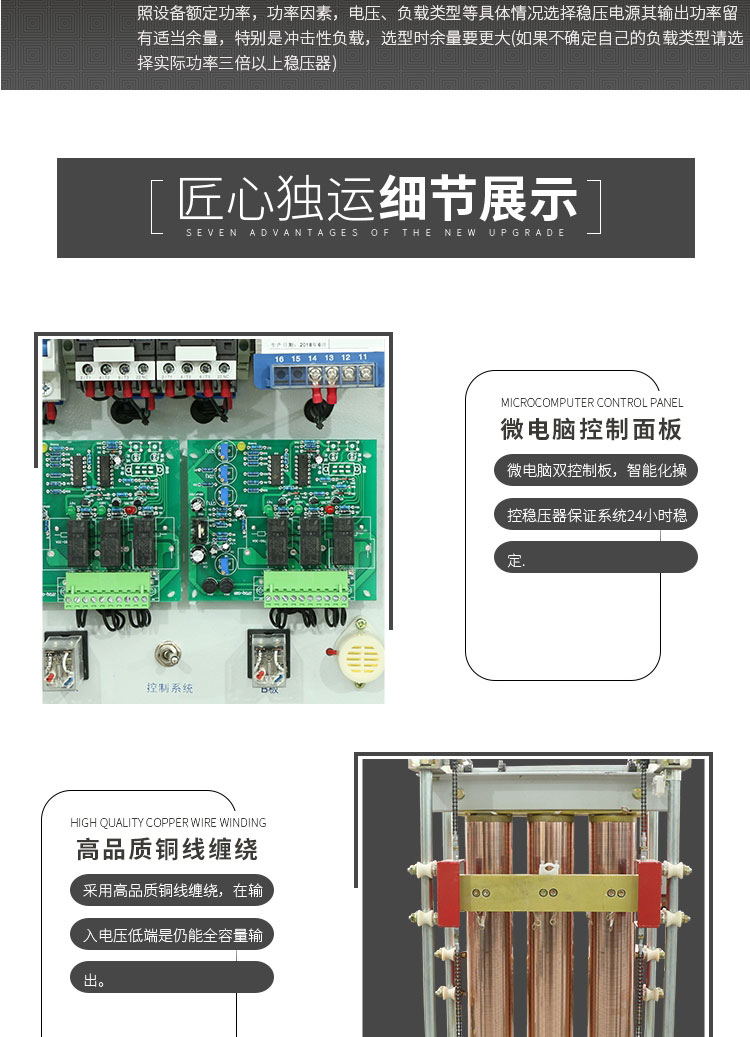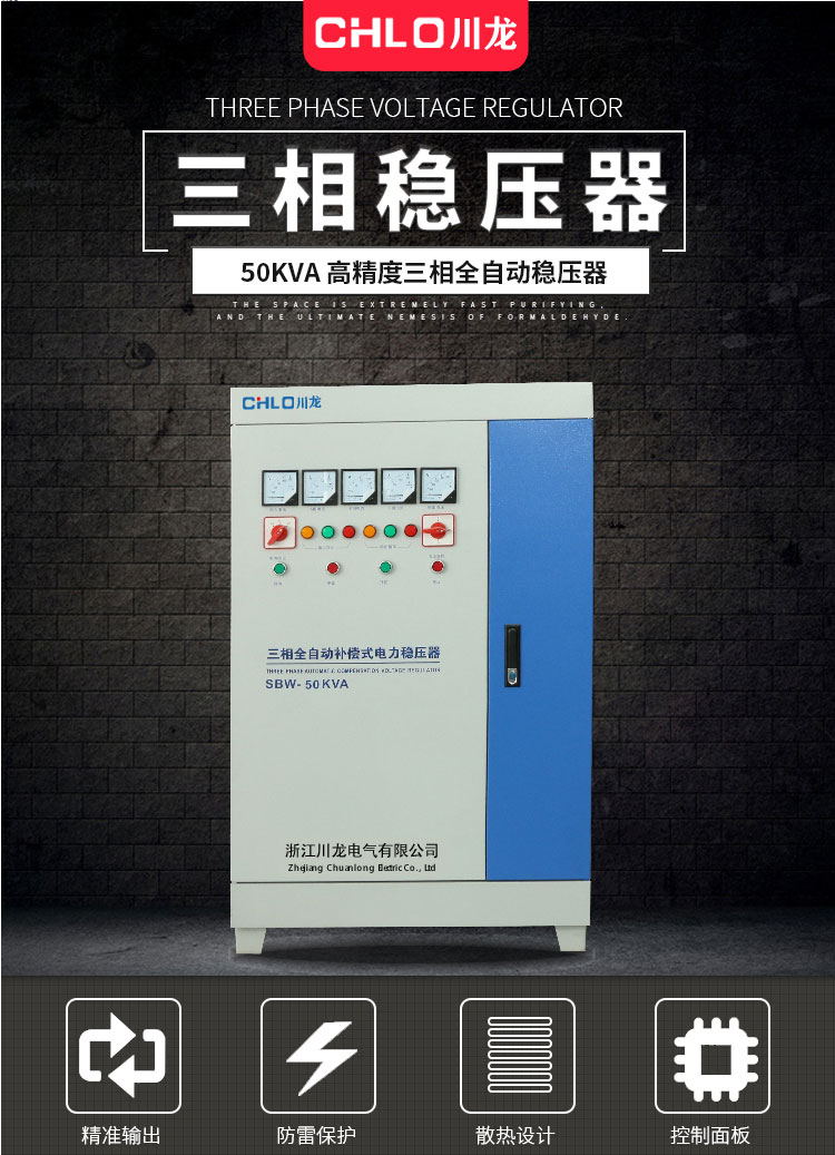 SBW三相補償式電力穩(wěn)壓器是使輸出電壓穩(wěn)定的設備。穩(wěn)壓器由調壓電路、控制電路、及伺服電機等組成。當輸入電壓或負載變化時,控制電路進行取樣、比較、放大,然后驅動伺服電機轉動,使調壓器碳刷的位置改變,通過自動調整線圈匝數(shù)比,從而保持輸出電壓的穩(wěn)定。
