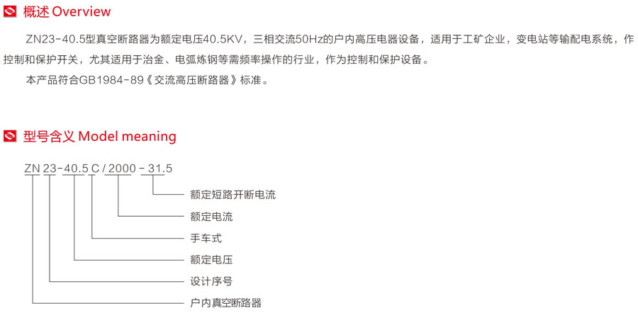 ZN23-40.5型真空斷路器為額定電壓40.5KV,三相交流50Hz的戶內(nèi)高壓電器設備,適用于工礦企業(yè),變電站等輸配電系統(tǒng),作控制和保護開關,尤其適用于治金、電弧煉鋼等需頻率操作的行業(yè),作為控制和保護設備。 本產(chǎn)品符合GB1984-89《交流高壓斷路器》標準。